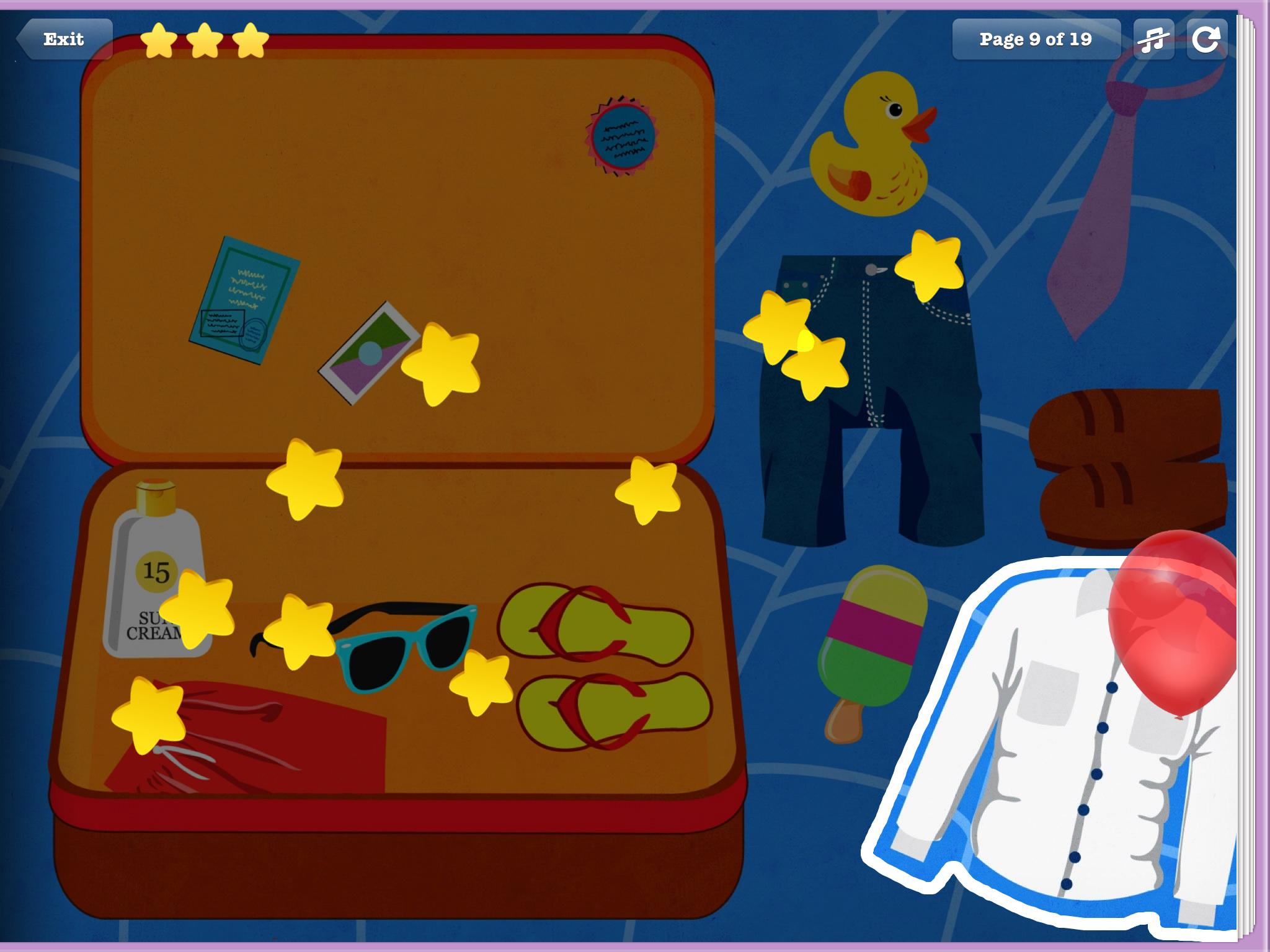 ¡Los niños aprenden qué empacar para unas vacaciones en este juego educativo interactivo!