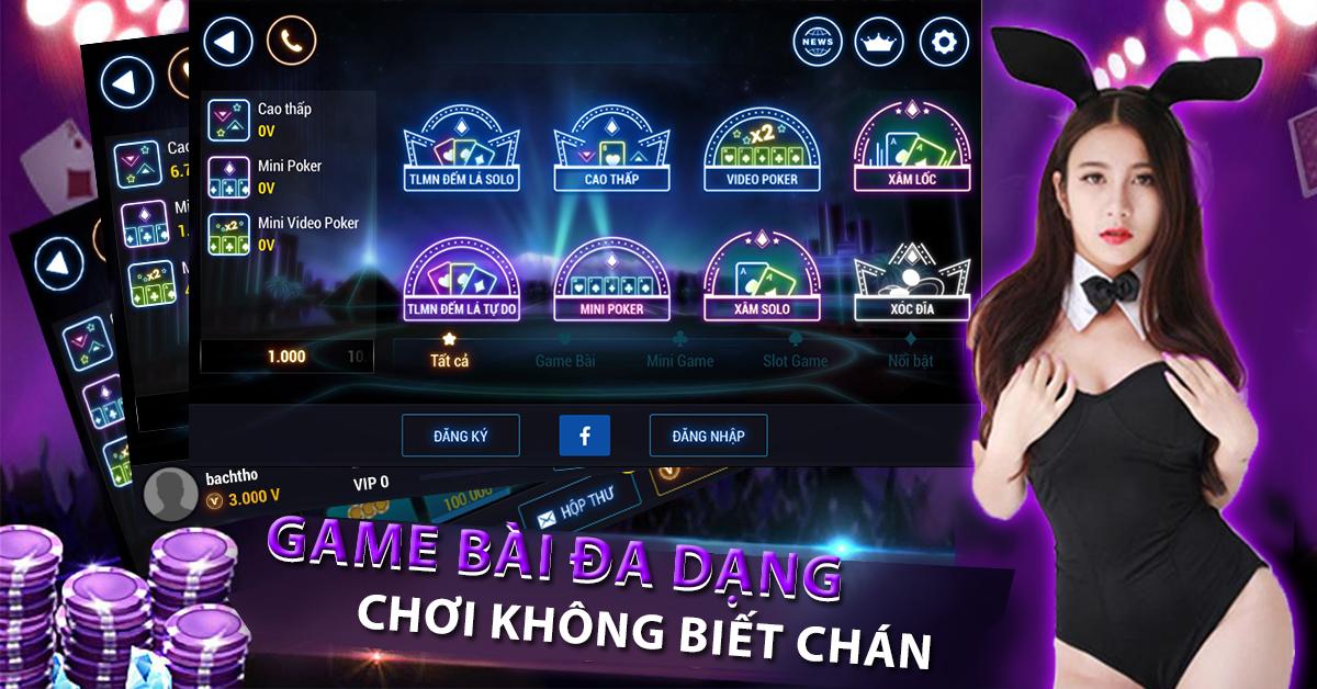 → Lleno de los juegos más calientes: Phom, Ginseng, Ta Lu, Tres árboles, Xoc Dia, Small, Going to the Massand Manket, Poker, incluso Retail ...