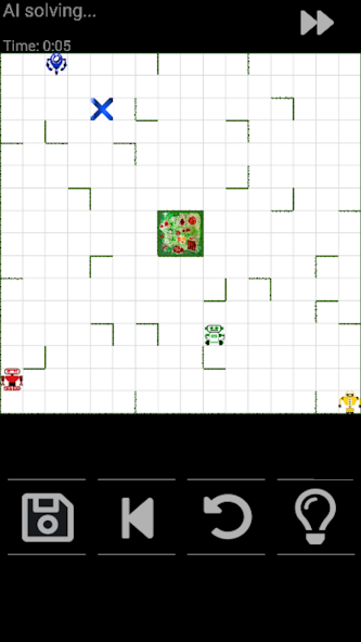Una aplicación basada en Android como el juego de mesa "Ricochet Robots ©". Incluye una inteligencia artificial capaz de resolver los rompecabezas.