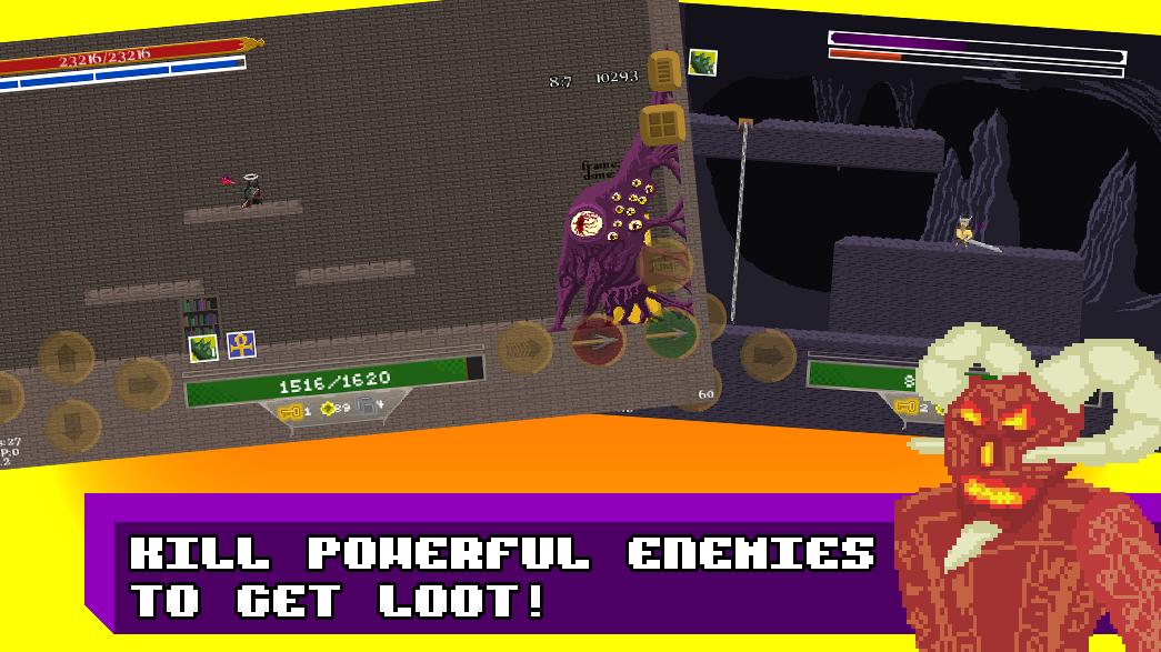 - Recoja las llaves de enemigos muertos y úselos para abrir cofres que contienen elementos para que tu personaje sea más poderoso.