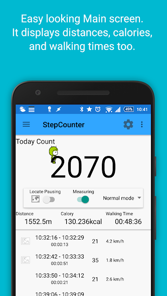Es un podómetro que usa el sensor de aceleración. Continuará contando en la parte posterior cuando salga de la aplicación. Si se activa un sensor de aceleración de modelo durante el sueño, continuará contando incluso en el sueño.