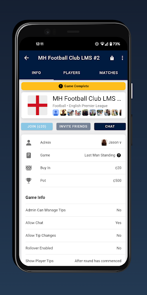 Establezca un juego hoy de una de nuestras ligas disponibles, invite a sus amigos y comience ahora. Todos los consejos deben estar en 10 minutos antes de la primera patada de la ronda.