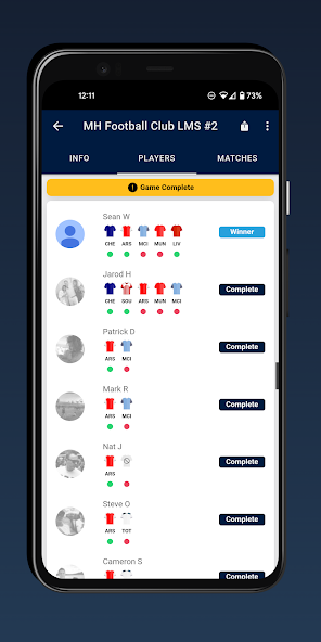 El formato del juego es realmente simple. Cada jugador selecciona 1 equipo para ganar cada ronda de una liga de fútbol en vivo (por ejemplo, EPL, NRL o AFL), si su equipo gana, juegas. ¡Dibuja o pierdes y estás fuera! El último de pie es el ganador del juego.