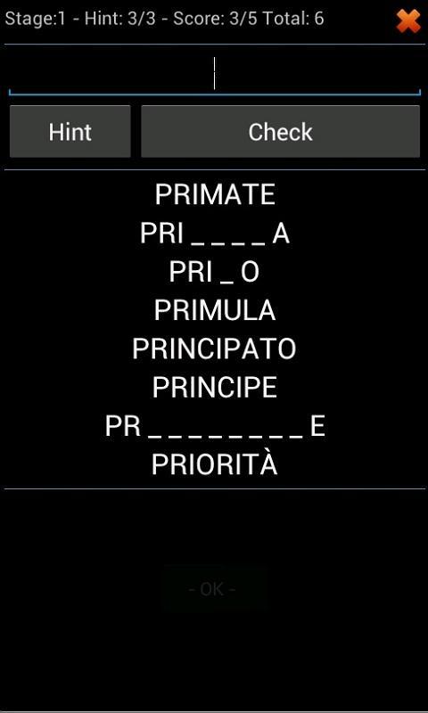Para cualquier etapa, hay más de 20 palabras posibles, para ir al siguiente nivel, debe averiguar al menos 5 palabras.