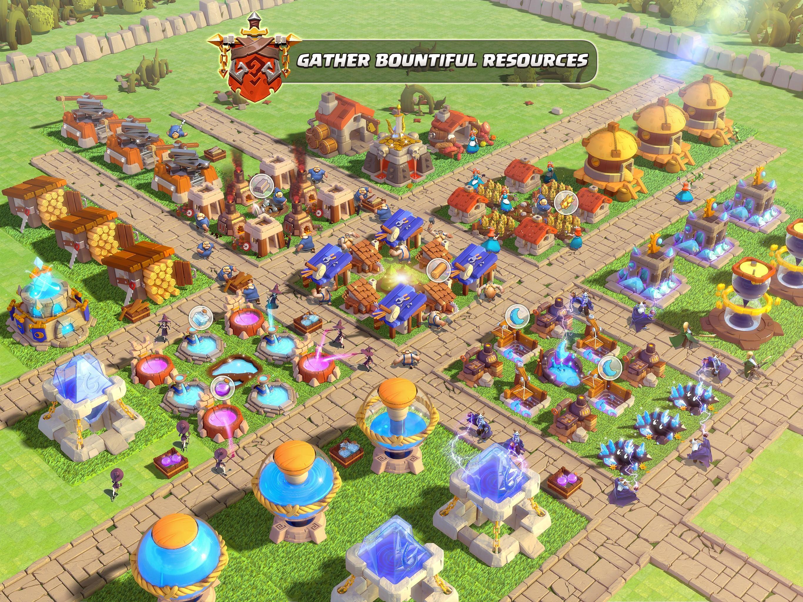 ¡La libertad absoluta en la construcción de la ciudad, actualiza tus edificios, investiga el arte arcano, entrena a tus tropas y recluta héroes poderosos para fortalecer tu imperio!