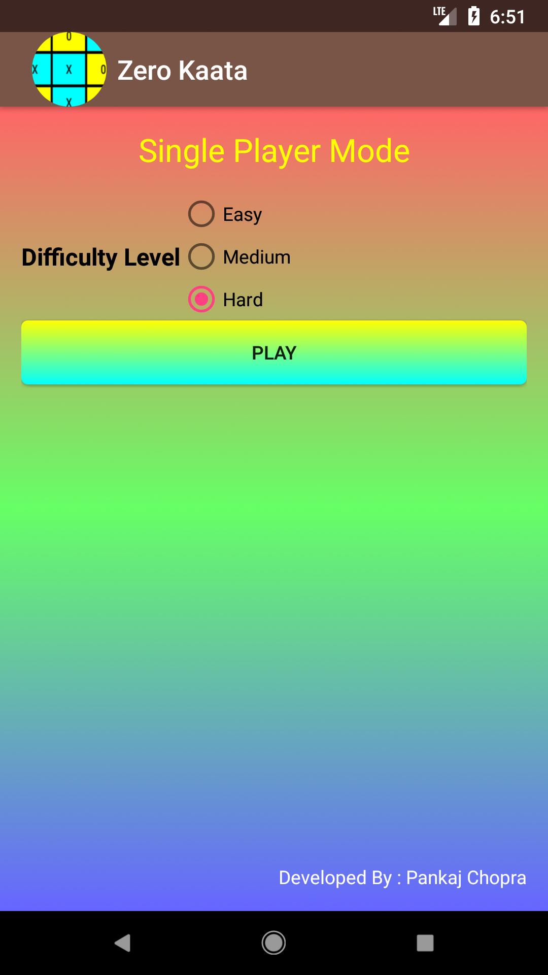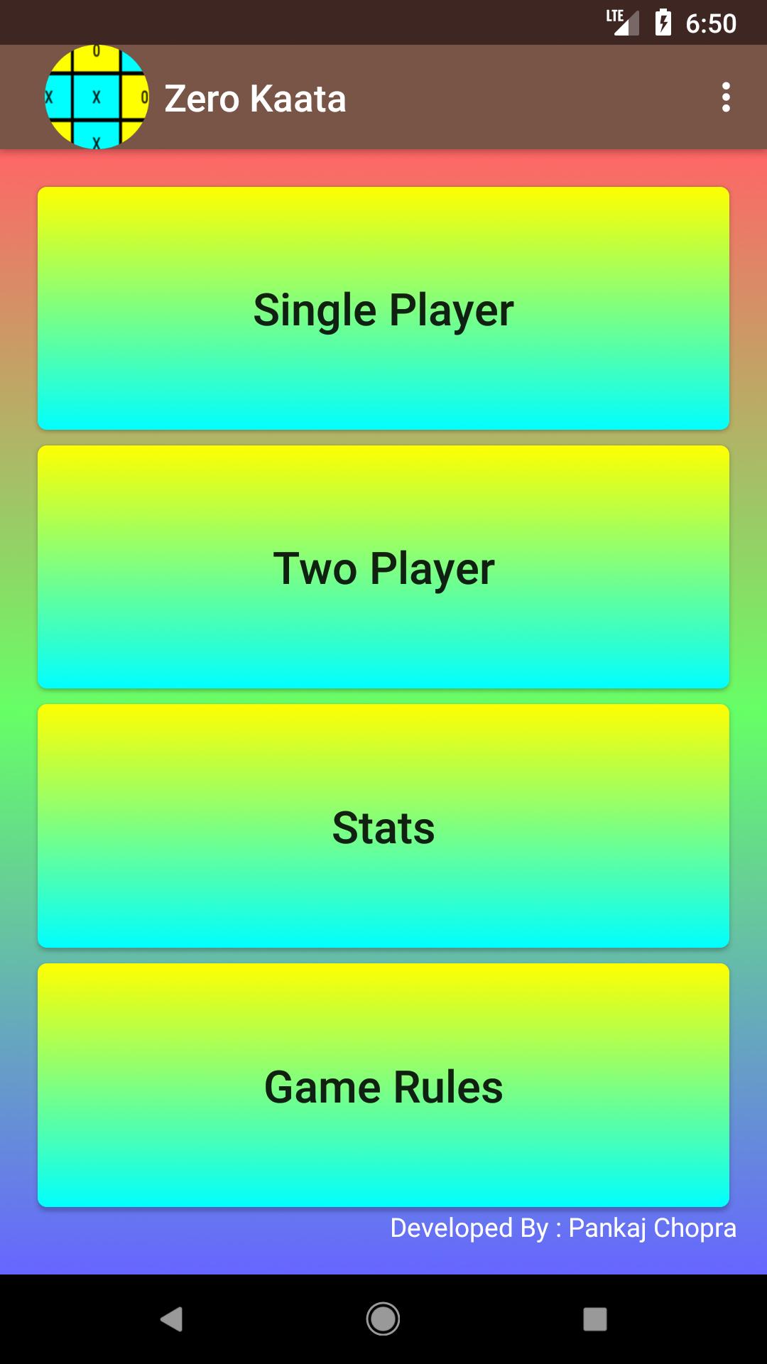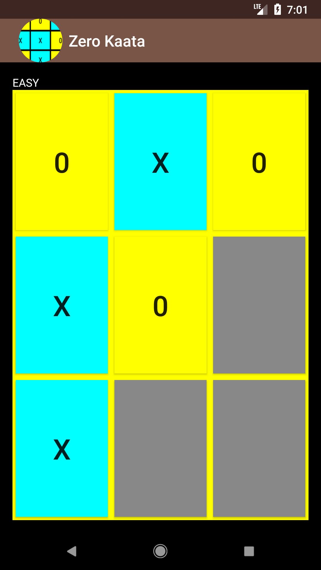 Zero Kaata o Tic-Tac-Toe (también conocido como Noughts and Crosses o XS y OS) es un juego de papel y lápiz para dos jugadores, X y O, que se turnan para marcar los espacios en una cuadrícula de 3 × 3. El jugador que logra colocar tres de sus marcas en una fila horizontal, vertical o diagonal gana el juego.
