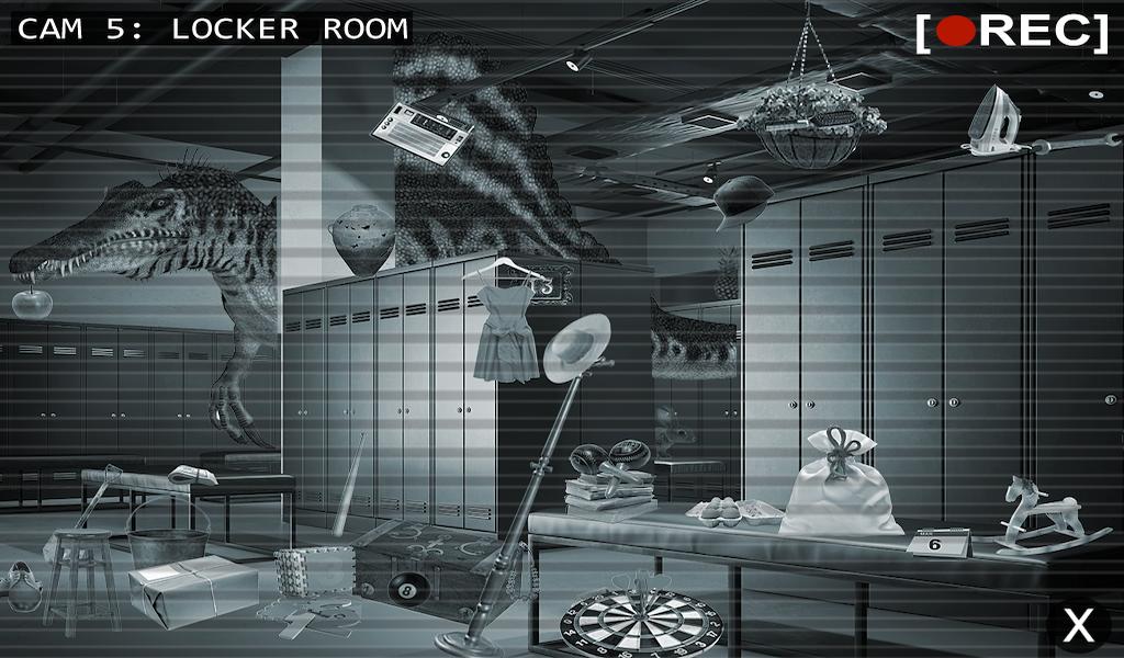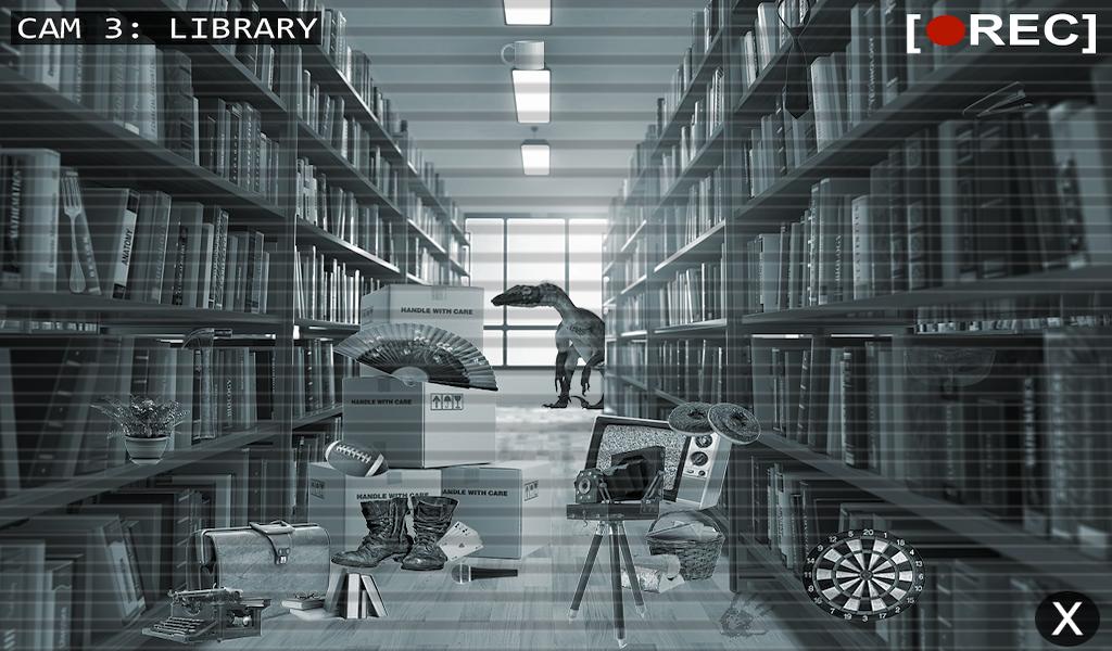 A dinosaur outbreak has happened right in the middle of your school day! You manage to hide out in the old security room, buy you need to escape the school before the dinosaurs find you. Use the security cameras to find the missing objects to escape. Be quick as you only have till 5:00PM.