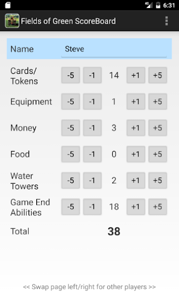 ScoreBoard for the board game Fields of Green