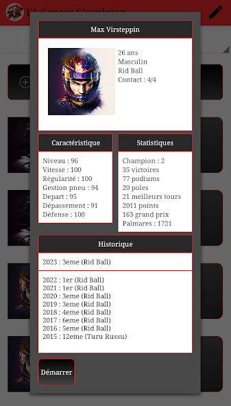 - Choose an existing driver or create your own driver with random stats.