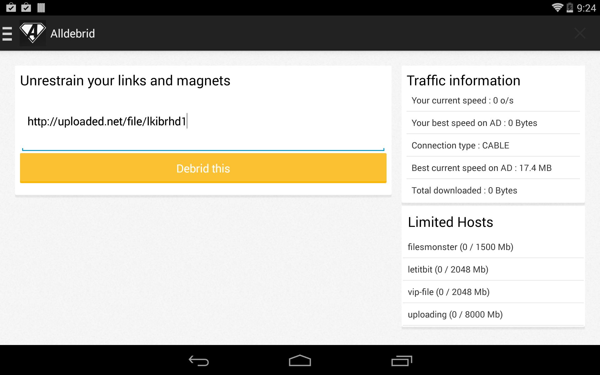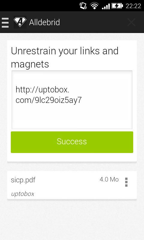 De toute évidence, vous avez besoin d'un compte d' Alldebrid (www. Alldebrid .com) pour utiliser cette application