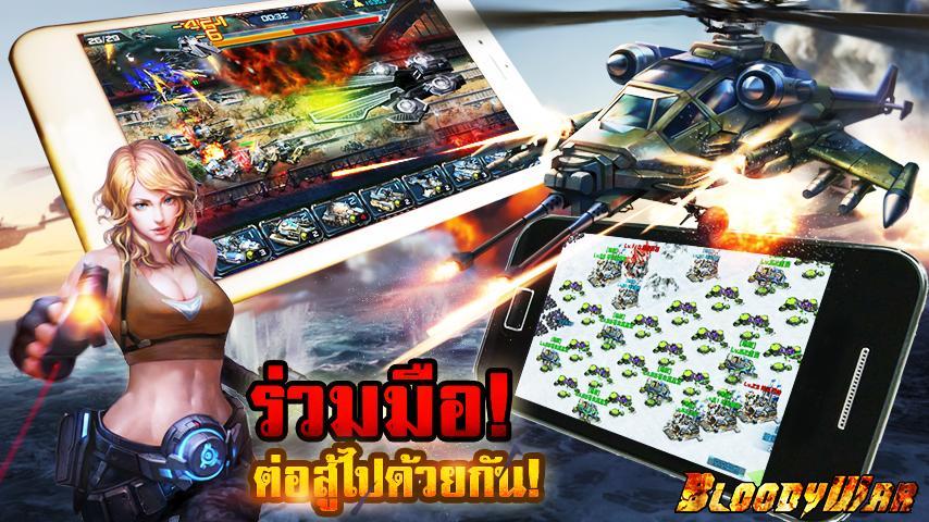 ยังจำความรู้สึกที่อยู่ท่ามกลางสถานการณ์อันตึงเครียดจนเหงื่อแตกพลัก สมรภูมิรบของจริงที่ทำให้เลือดสูบฉีดพุ่งพล่านได้หรือเปล่า? เวลาที่ได้ยินคำพูดที่คุ้นเคยพวกนี้แล้ว เลือดในกายคุณมันเดือดพล่านมั้ย?! เหล่าทหารกล้า ถึงเวลาทำให้โลกได้รับรู้ถึงการมีตัวตนของพวกคุณแล้ว! Bloody War สมรภูมิที่เต็มไปด้วยควันระเบิด กำลังรอผู้กล้าบ้าระห่ำแบบคุณอยู่!