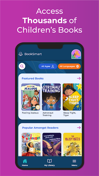 BookSmart est une solution tout-en-un qui fournit des milliers de livres gratuits, de matériel d'apprentissage et d'activités dans diverses langues pour les enfants de la maternelle à la 12e année. Le contenu engageant a été soigneusement organisé pour soutenir l'apprentissage et les objectifs socio-économiques et promouvoir le développement de la lecture. Les gardiens peuvent lire avec leurs enfants et terminer des activités de plaisir et de formation intégrées qui favorisent la compréhension et l'apprentissage.