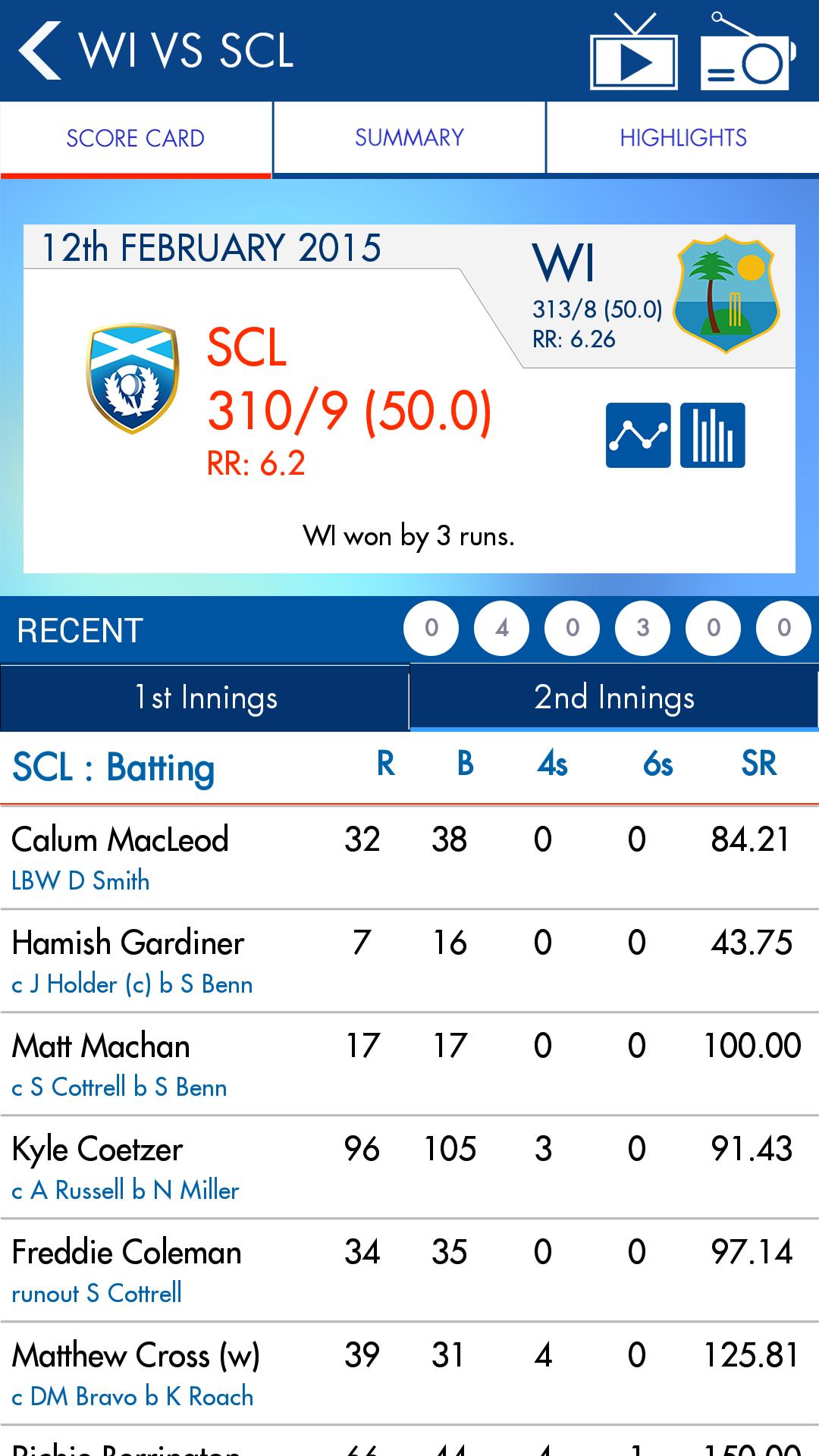 - Il y a des points forts vidéo au cas où vous auriez raté l'une des actions. Chaque guichet, chaque six sensationnels et bien plus
