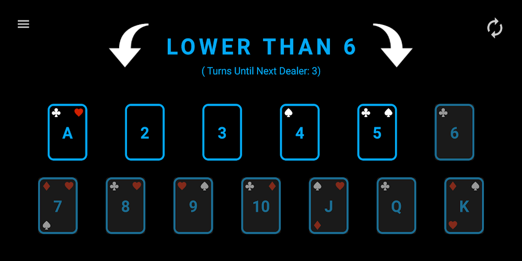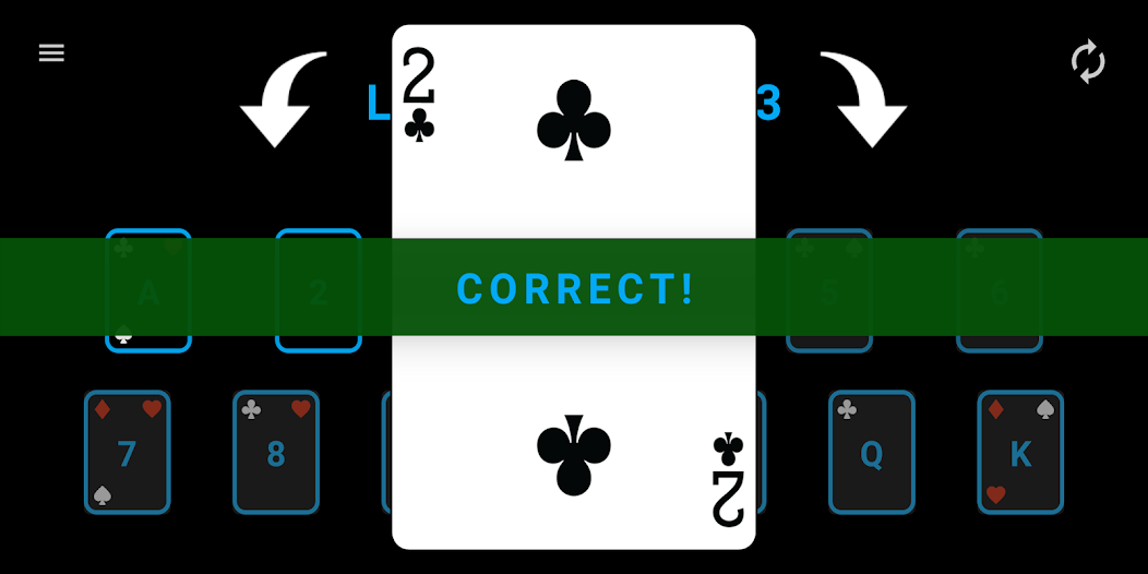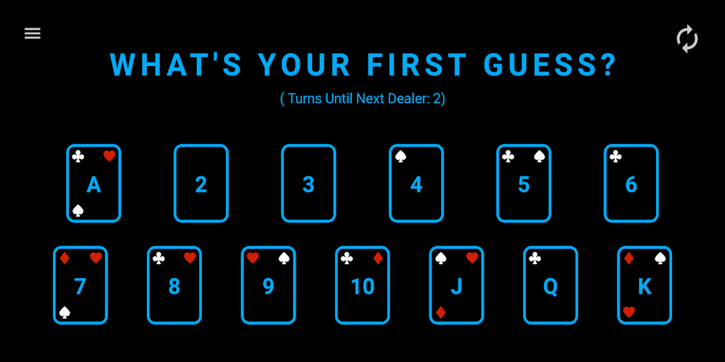 - S'ils devinent incorrectement, ils devinent à nouveau, mais on leur dit si la carte est plus faible ou supérieure à leur supposition initiale