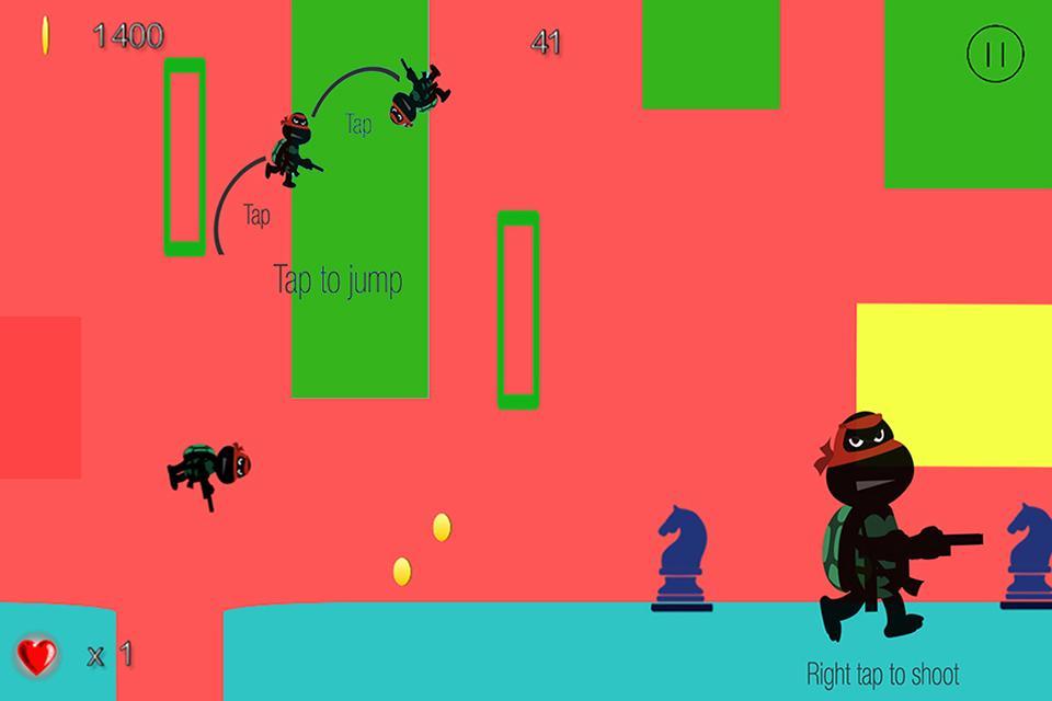 Suivez et guidez votre tortue ninja dans cette nouvelle aventure. Style de conception unique!