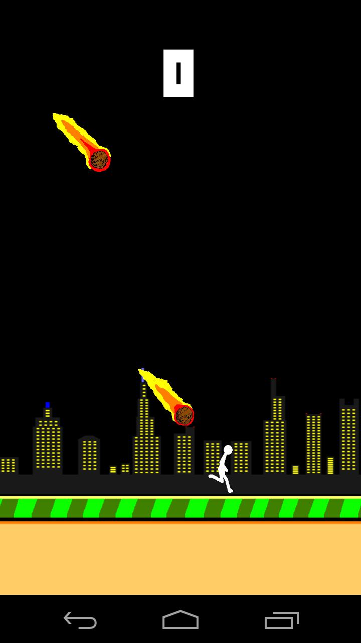 Pour le sauver, vous devez appuyer en continu sur l'écran pour le faire bouger bien. Lâchez prise si vous voulez qu'il ralentit et allez à gauche. Votre travail consiste à esquiver les météores. Plus vous esquivez de météores, plus les points sont élevés. N'oubliez pas que vous ne pouvez pas quitter l'écran, ou vous serez incendié!