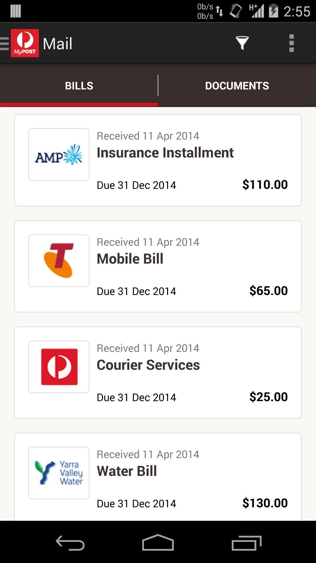 La gestion du courrier, des factures et des budgets n'a jamais été aussi simple. Accédez à votre boîte aux lettres numérique en déplacement de votre téléphone ou tablette Android vous permettant de payer facilement les factures avec votre carte de crédit.