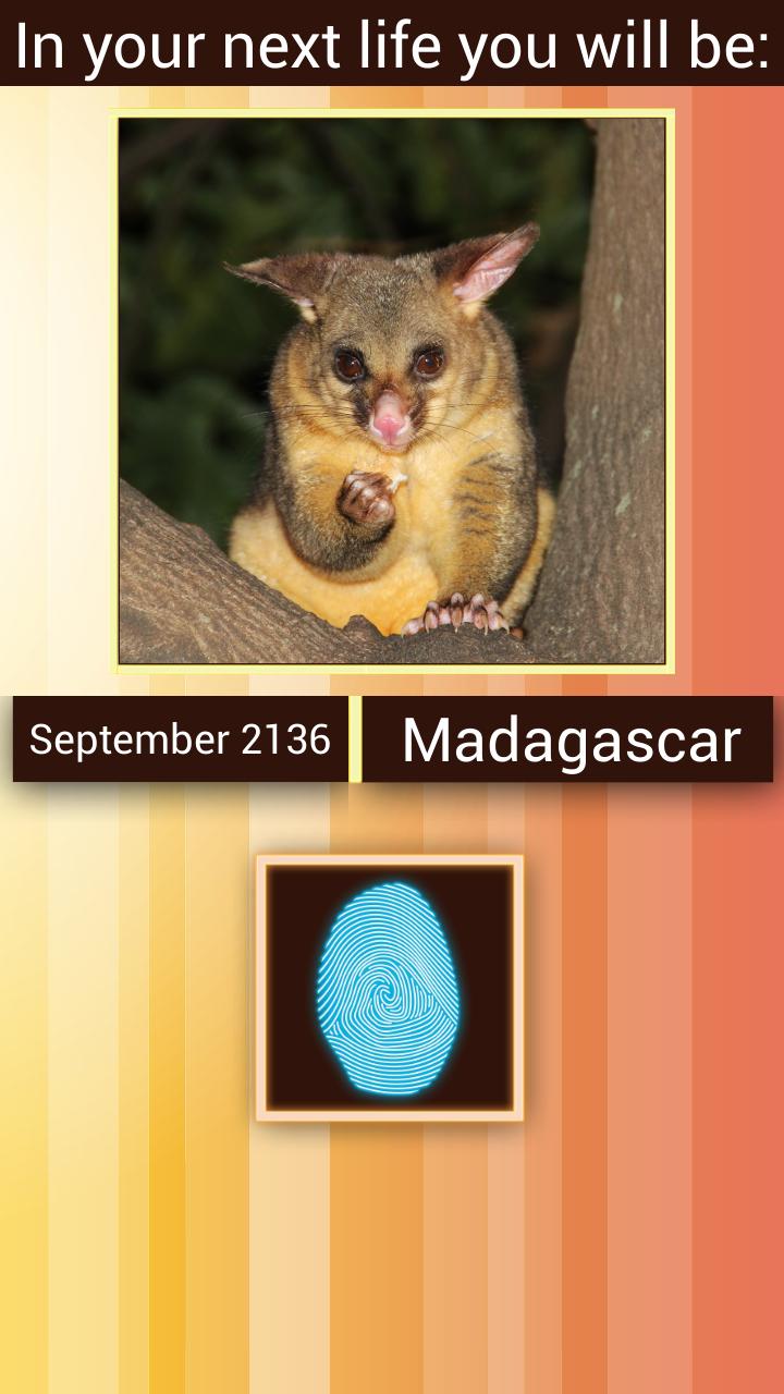 Peut-être que votre prochaine vie sera dans un autre pays, un autre siècle et un autre sexe. N'attendez pas, scannez votre doigt et vous moquez de notre application dès maintenant.
