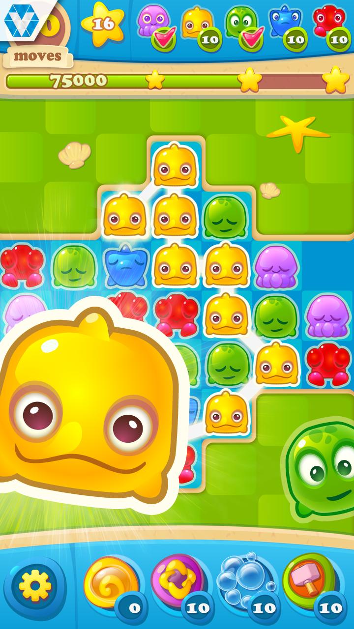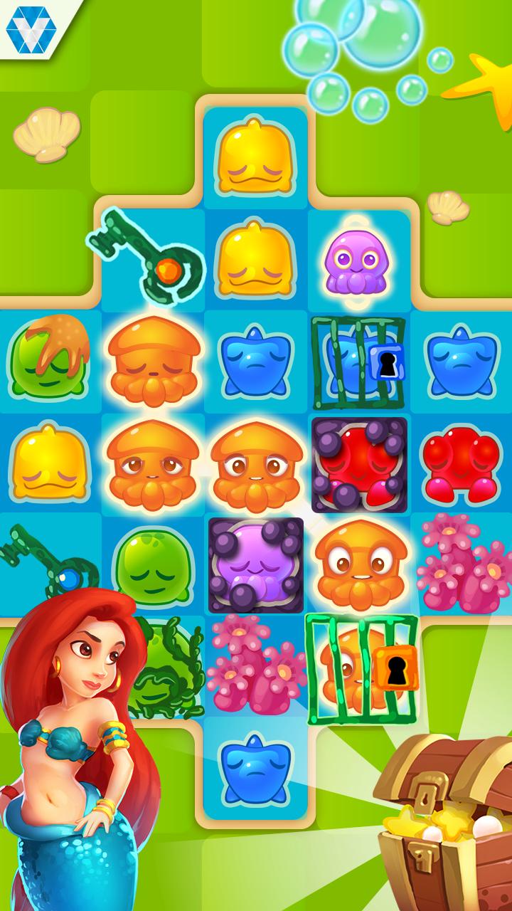 Sautez dans l'eau de la mer et profitez du monde sous-marin adorable et incroyable d'Atlantis. Mélanger, échanger et éclabousser vos amis marins, connecter chaque poisson de gelée épique dans la mer et gagner le défi avec une réaction en chaîne incroyable. Utilisez des boosters pendant votre aventure pour effectuer des quêtes difficiles à réussir. La belle sirène est de votre côté pour vous soutenir mentalement. Aucun monstre ne passera à votre écran, seulement de beaux amis épiques de gelée épique. Faites correspondre 3 ou plus et démarrez une réaction en chaîne des explosions juteuses. Libérez les poissons capturés des monstres de la mer, profitez pleinement Ocean Splash !