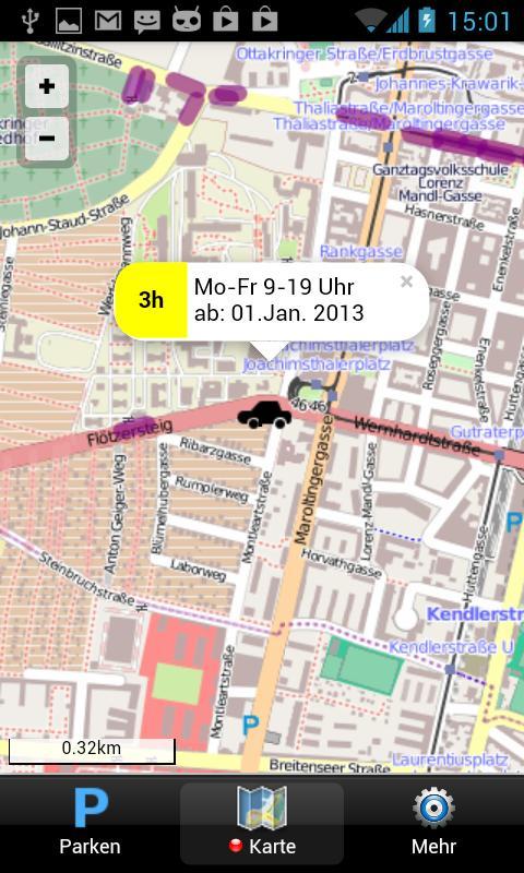 Le Parksau offre des informations claires sur le stationnement sur les zones de stationnement courtes et les rues commerçantes. De plus, les tickets de stationnement peuvent être achetés et étendus via SMS.