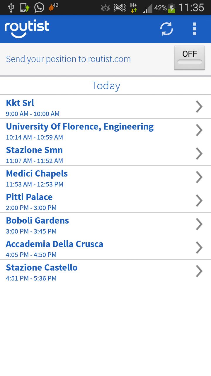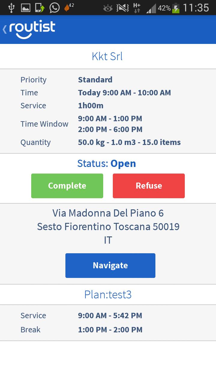 Routist .Com prend en charge les moteurs individuels et les gestionnaires de flotte planifiant des micros, des livraisons ou des services sur le terrain, en tenant compte, de manière optimale, des coûts, du kilométrage, des priorités, des fenêtres temporelles, des capacités de camions, des compétences, des problèmes de compatibilité, etc. La flotte peut ensuite partager les plans et les progrès de l'état de la commande à l'aide des applications mobiles .com Routist .