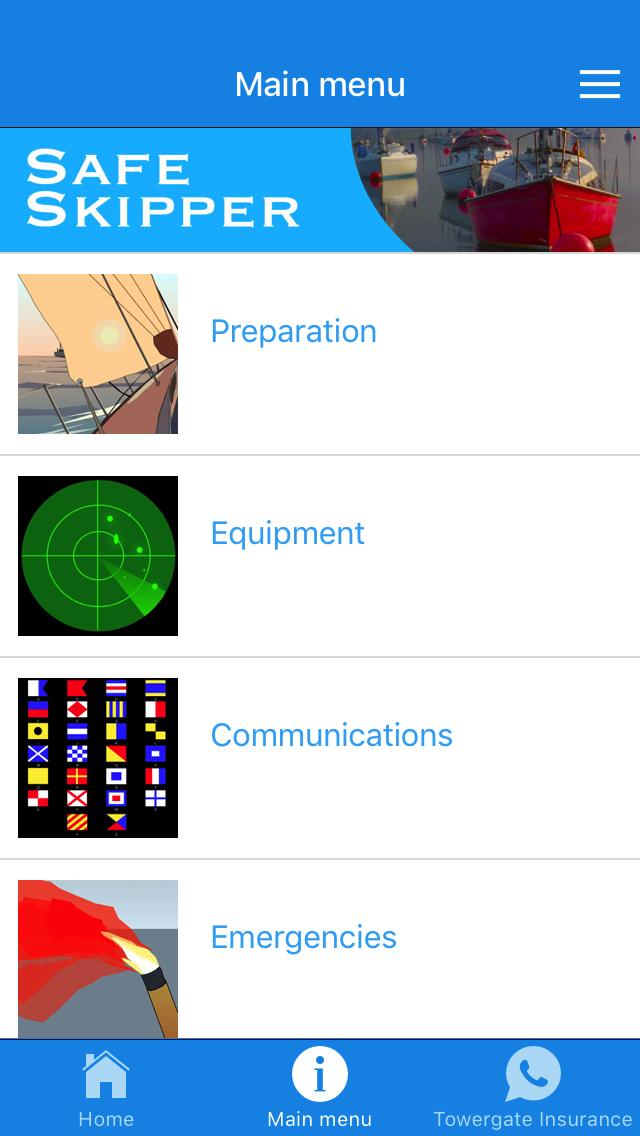 Safe Skipper fournit des conseils sur la préparation, les listes de contrôle, l'équipement, les communications et les procédures d'urgence. L'application sera mise à jour régulièrement et l'équipe des développeurs accueillera toujours les suggestions de nos utilisateurs pour que d'autres sujets incluent dans les futures mises à jour.