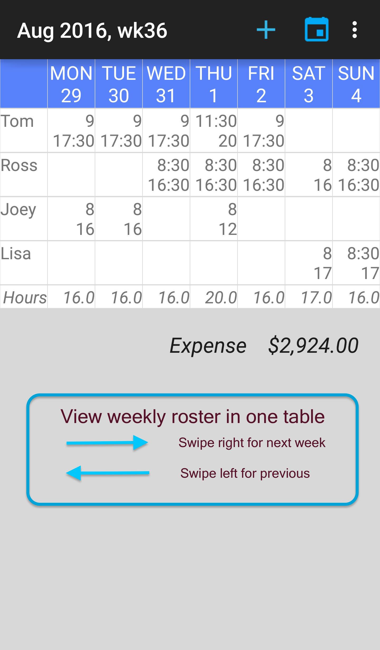 Gérez les équipes hebdomadaires du personnel dans une table. Un outil commercial essentiel facile à utiliser.