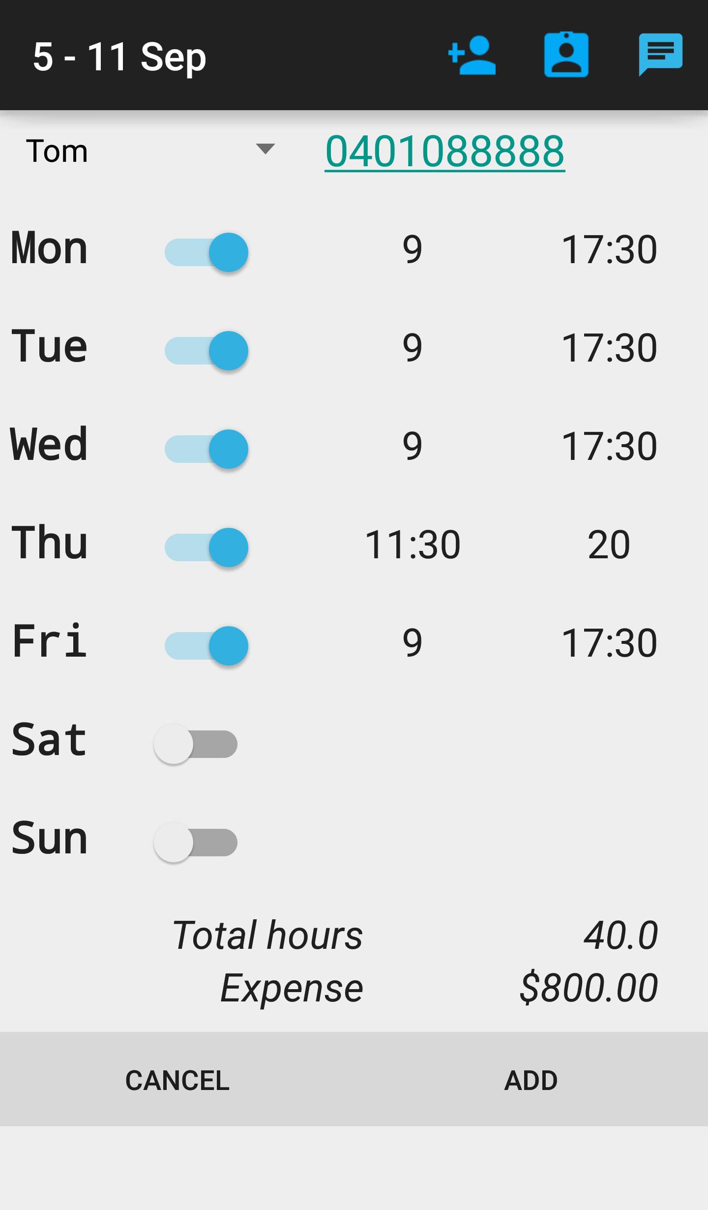 * Définissez le taux de personnel par défaut ou un taux différent pour chaque jour.