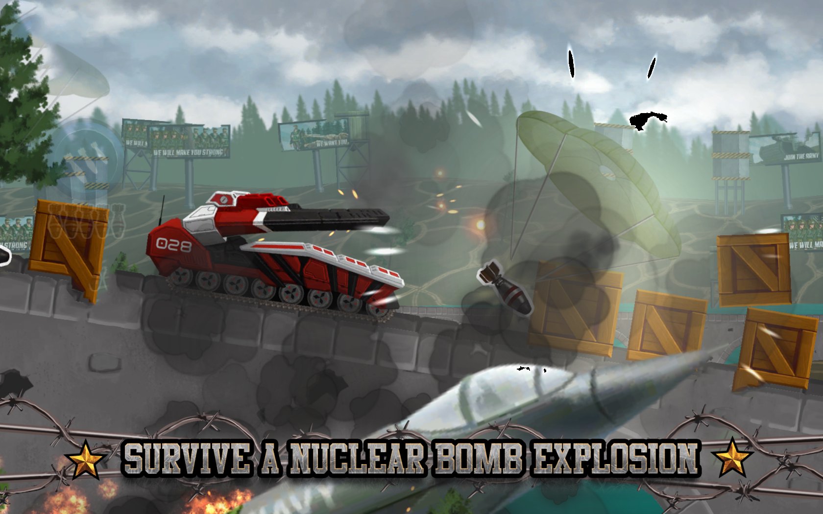 Bonjour soldat, rejoignez l'armée et combattez dans la guerre ultime ! Montez à bord de votre machine en fer préférée et accomplissez une mission : sauver la terre de l'explosion nucléaire mortelle. Alors préparez-vous à affronter un char dangereux qui traverse le champ de bataille, évitez les bombes, les mines et les missiles, attaquez les ennemis et atteignez la zone de sécurité !
