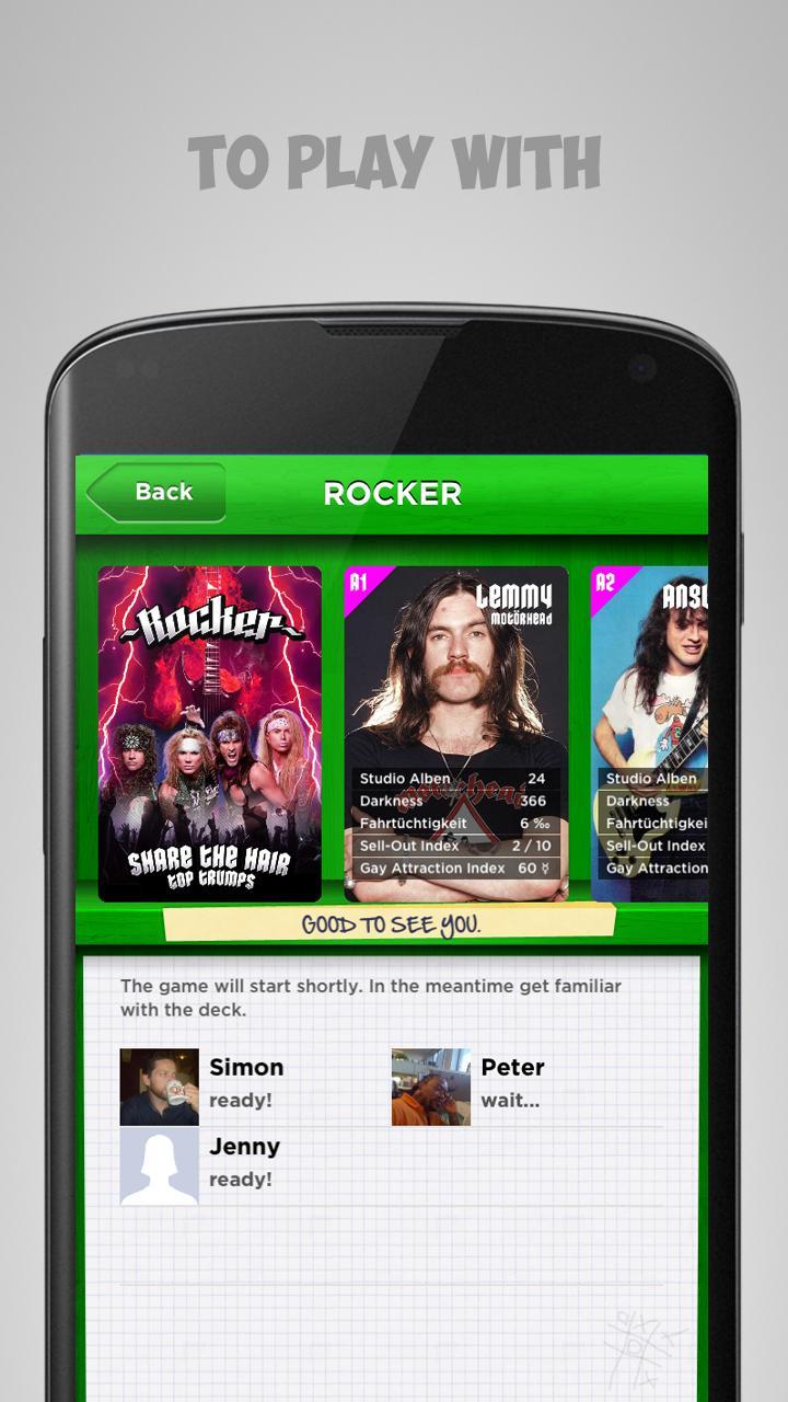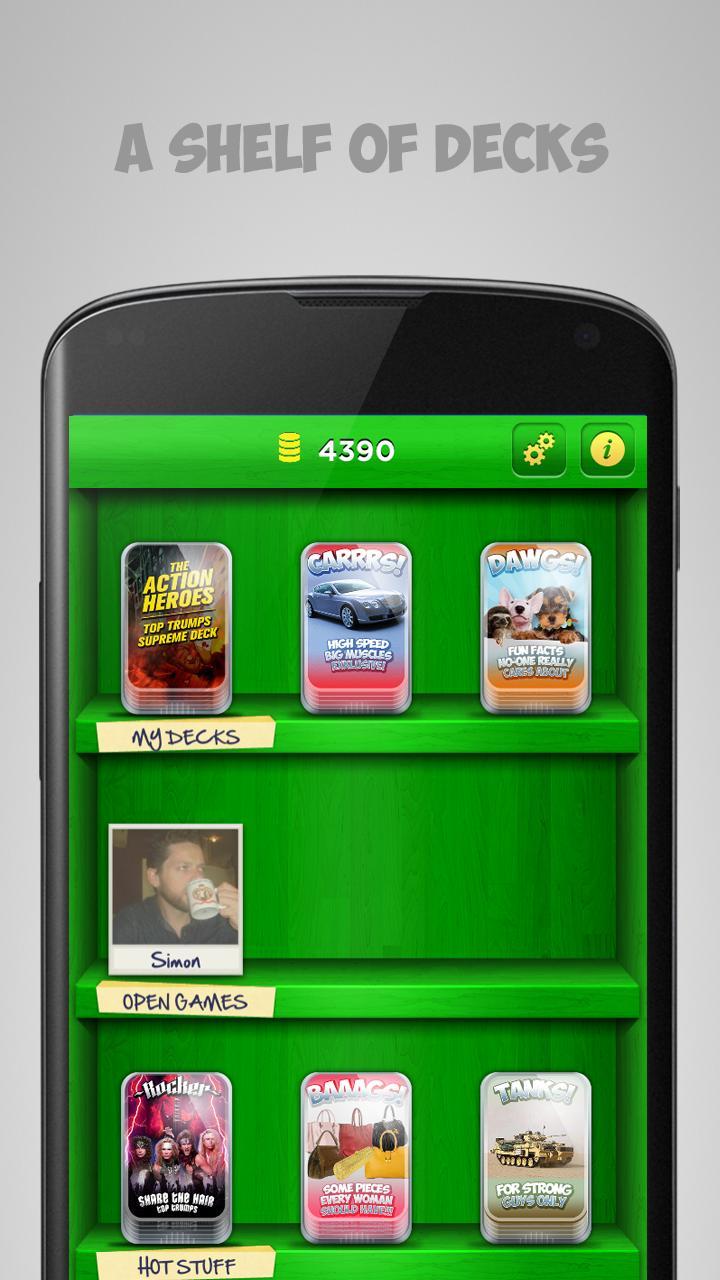 Trumps peuvent être joués des familles d'appareils Accoss. Recherchez l'application dans les magasins d'applications spécifiques.