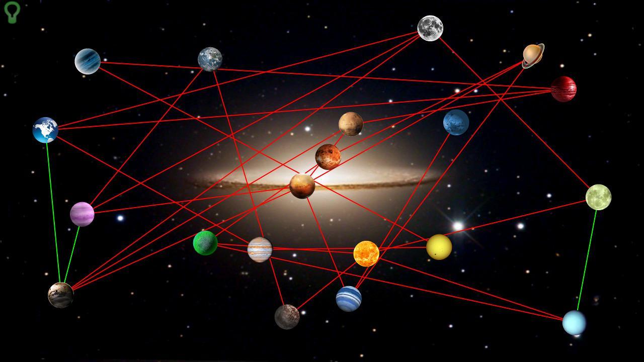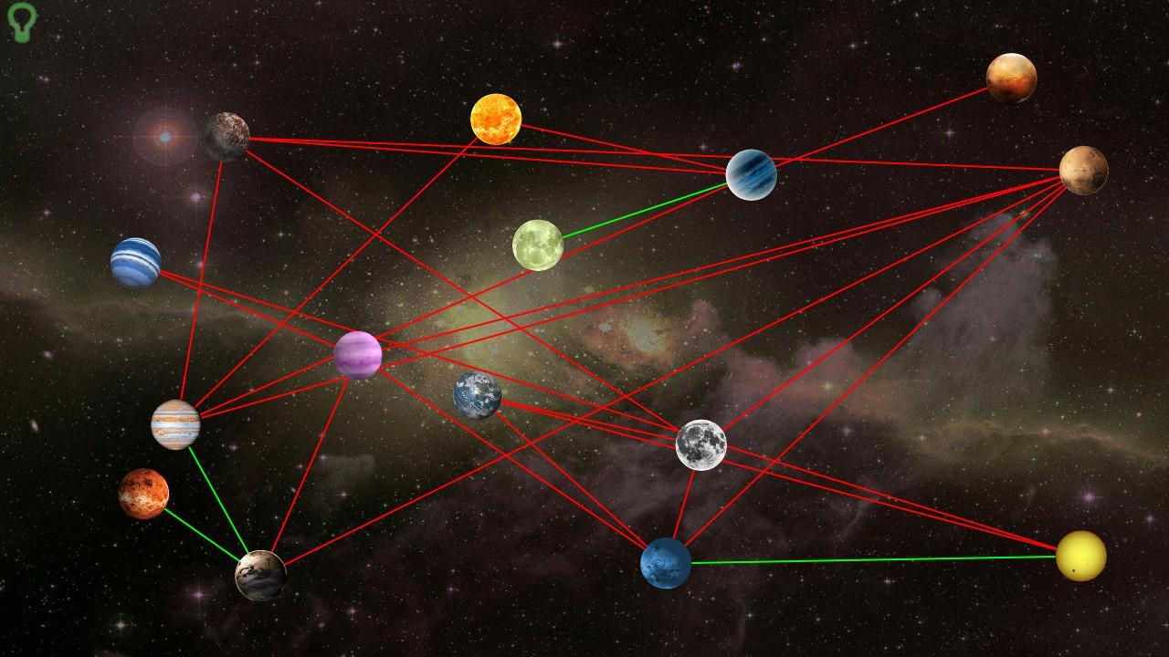 Untangle Me est un jeu de logique addictif où l'objectif est de démêler, le plus rapidement possible, toutes les lignes rouges reliant les différentes planètes en les rendant vertes. Pour vous déplacer vers les planètes, cliquez simplement sur la planète d'intérêt et déplacez-la vers un emplacement qui vous permet de transformer les lignes vertes qui les unissent à d'autres. Le jeu se termine lorsque toutes les lignes rouges sont vertes!