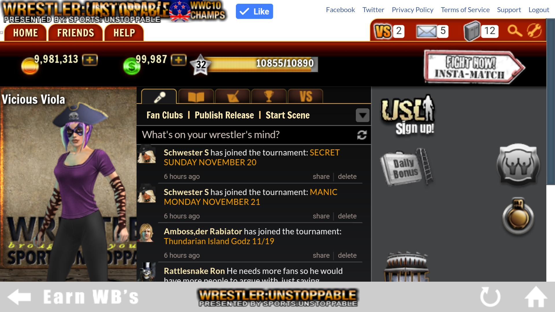 Jouez Wrestler: Unstoppable , un jeu de stratégie de lutte à tour de tour, pour lancer votre carrière de lutte et combattre votre chemin vers le haut! Créez votre propre lutteur et détruisez la compétition de décalage. Vous gagnez de l'argent de jeu et des mises à niveau cool pour votre lutteur lorsque vous vous battez et gagnez des événements. Nous avons mis à jour Wrestler: Unstoppable avec de nouveaux mouvements, de nouveaux équipements et plus encore. Jouez maintenant gratuitement!