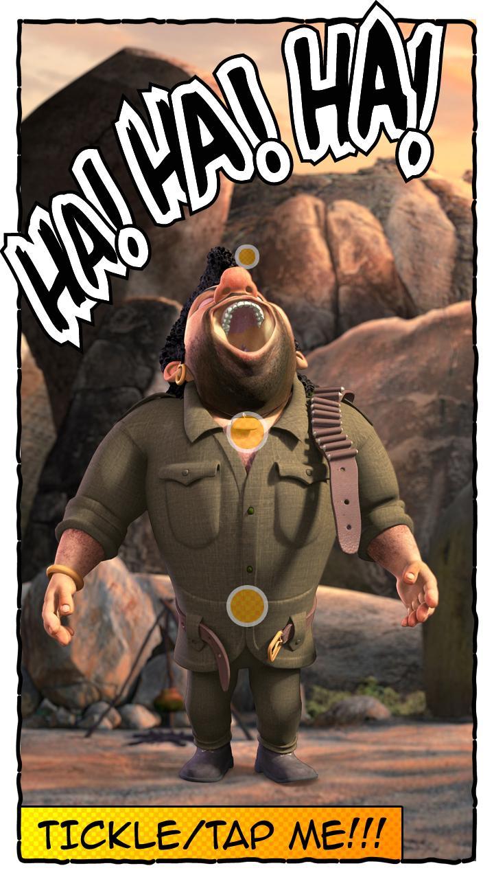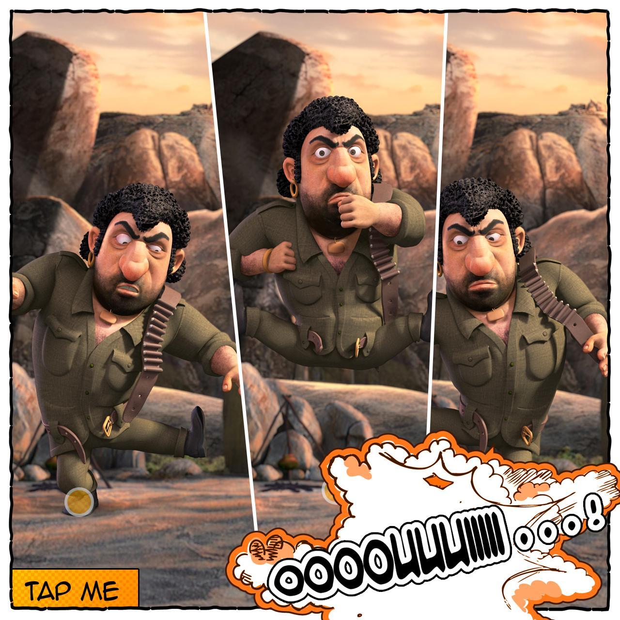 His amusing interactions make a it a fun leisure app for grown-ups and children alike. Tap his hands, legs, belly and get him to dance to your taps. But too many taps in one go, and you could see some of his hidden playful tricks in action. Tickle his belly till he bursts out into his famous never ending laughter. Tease him with sudden jerks (of the device) and you could see him struggle to stick to the walls so that he doesn't fall off. Lift him up high, and see him take a good shot at flying in the air! Oh yes, if you leave him idle, he does get troubled by Thakur and Jai (Jay), find out how..