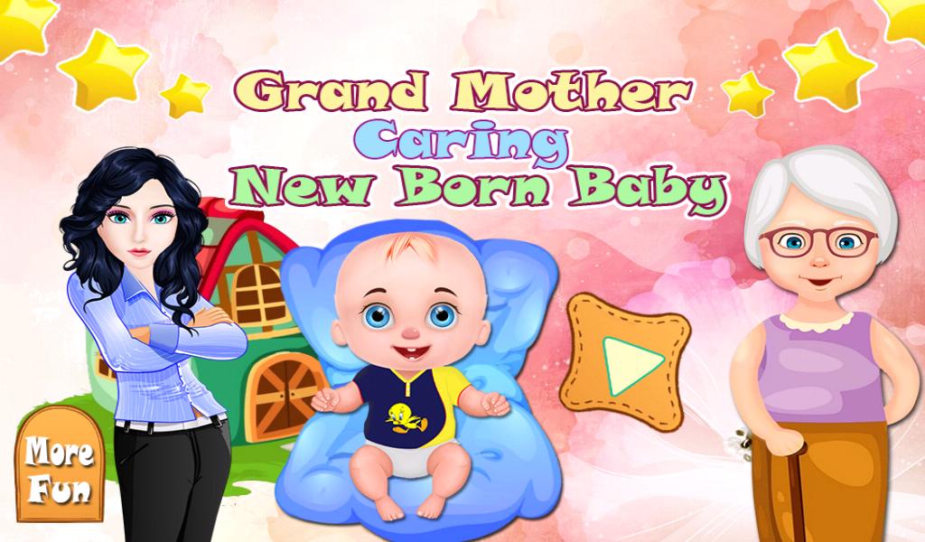 Grandmother caring newborn baby - baby games