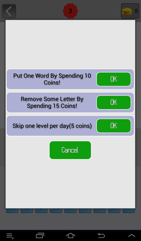 Stuck on a puzzle? Utilize hints and reveals to get out of the jam. You can use them to show random letters or to even remove letters that you don't need. You can even utilize the help of your Facebook friends to see if they can help you with a tough puzzle.