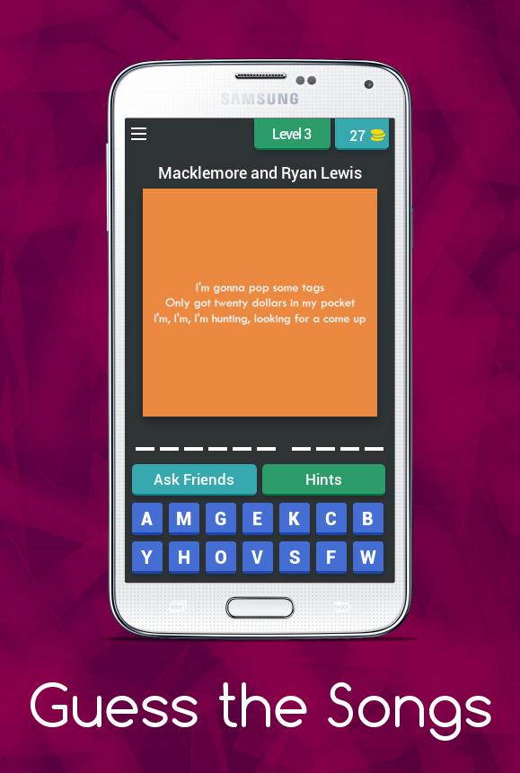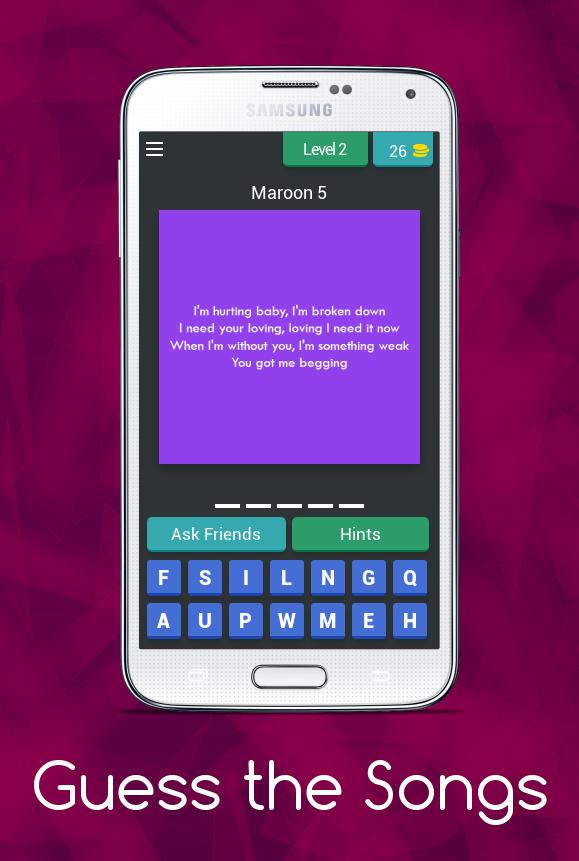 Lyrics of a particular song and the song owner would be displayed, you have to guess the title of that particular song.