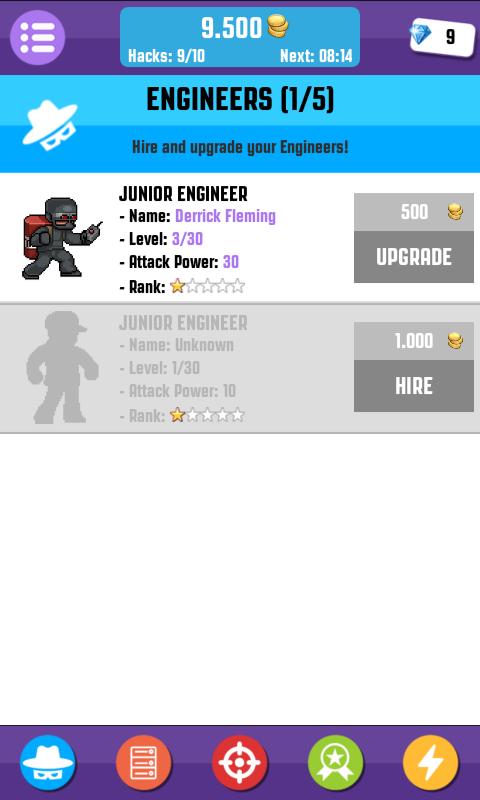 You can have up to 5 Engineers (Hackers). They work for you to take control of all apps in the world.