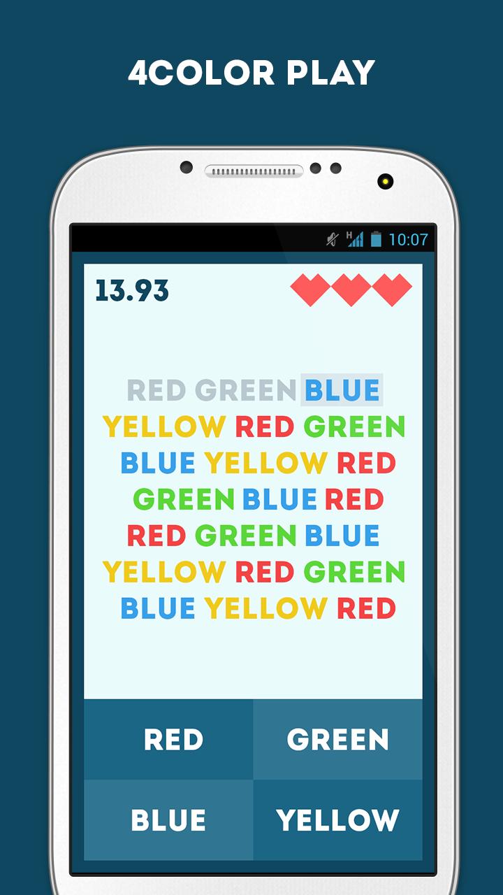 I Hate Color is simple but challenging brain puzzle game based on Stroop Effect.