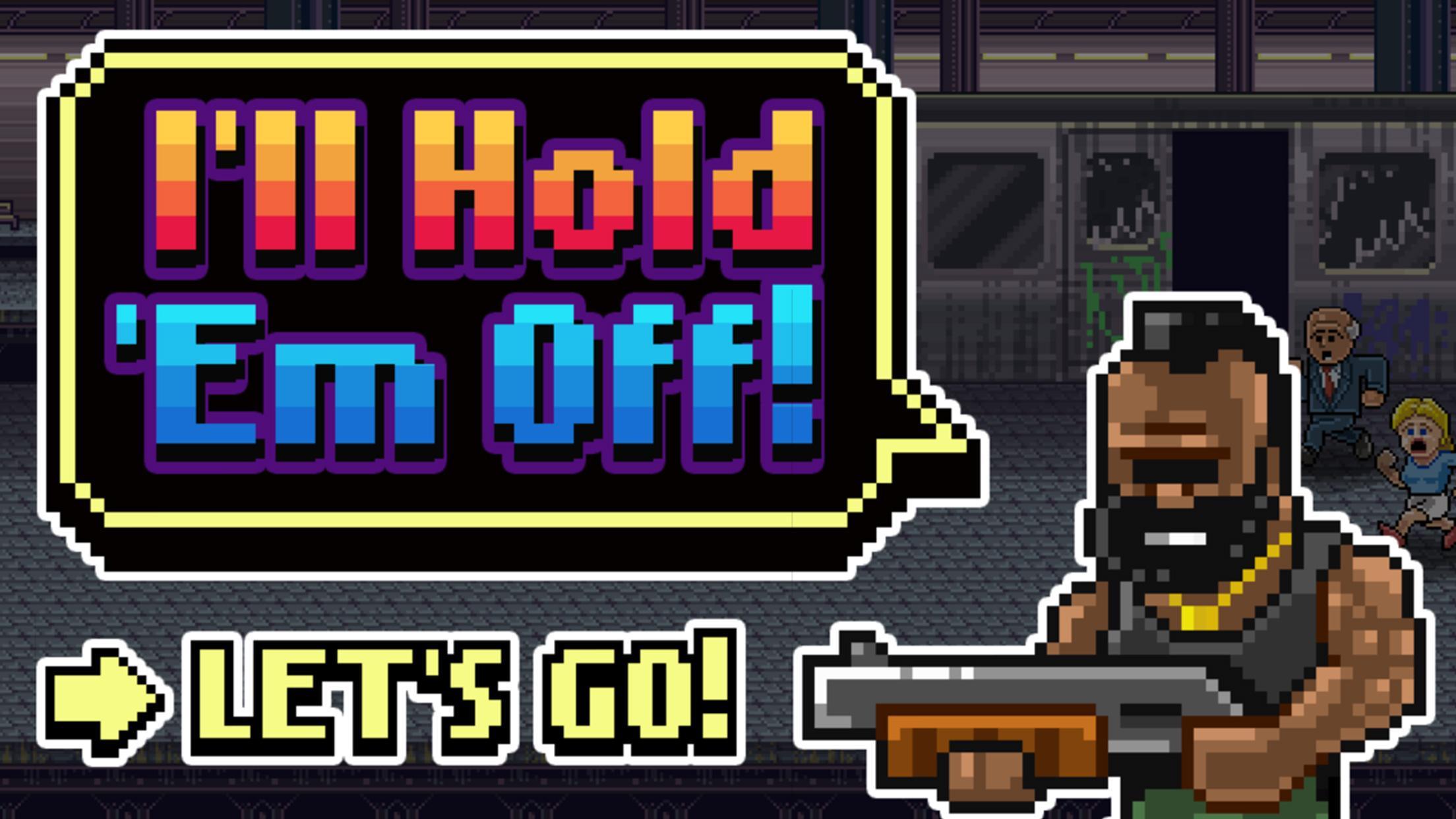 I'll hold em off is a splatter fest arcade game set in a post apocalyptic future. Escaped convict (turned desperate redemption seeker) John Savage has accepted his fate and in a last minute attempt to meet his maker with a clean conscience he's decided to use whatever god damn weapons he can to save as many peeps as possible.