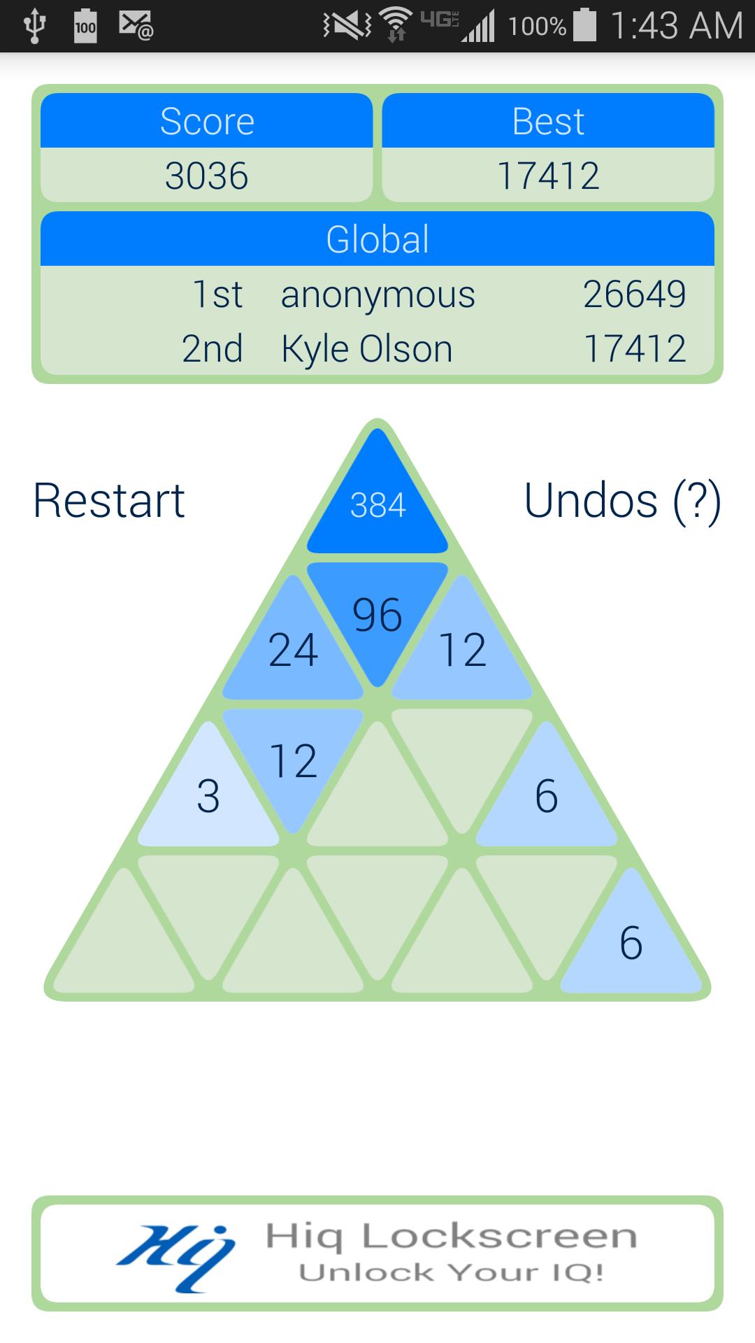 3072, gabungkan segitiga yang sama, panjat papan peringkat, dapatkan highscore, lalu lakukan lagi. Bagikan screenshot dan teman -temannya akan ditantang untuk mengalahkan skor Anda.