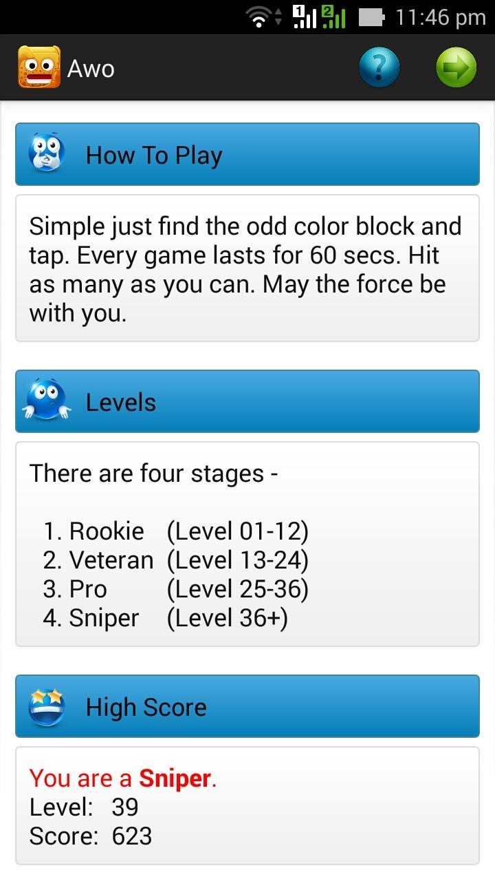 Dalam game ini seorang pemain harus menemukan satu sel yang memiliki warna berbeda dari sel lainnya. Setiap pertandingan berlangsung selama enam puluh detik. Tujuannya adalah untuk membersihkan sebanyak mungkin level.