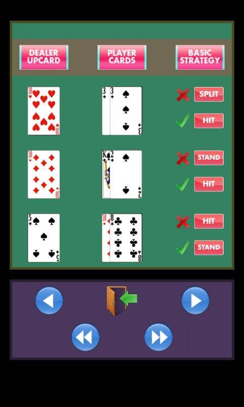 Perangkat lunak simulasi blackjack ini dikembangkan untuk melatih Anda untuk bermain dengan strategi dasar berikut.