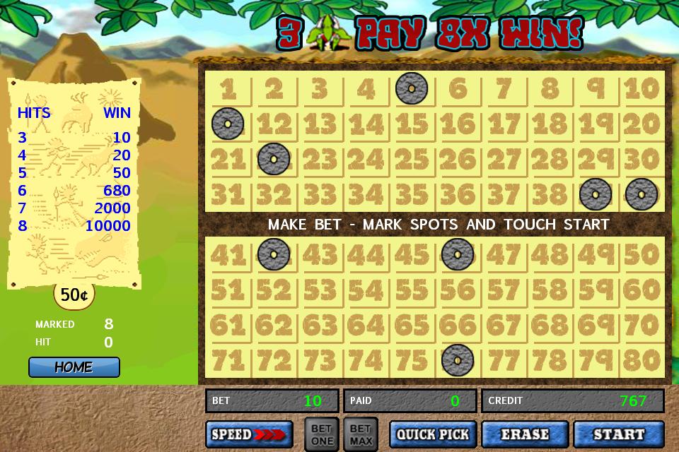 Caveman Keno adalah permainan yang sangat menyenangkan yang dinikmati pecinta kasino karena ini adalah variasi keren dibandingkan keno standar dengan grafik yang kuat dan suara kuno yang menyenangkan. Tekan 2 atau lebih telur dino dan terima pengganda untuk memenangkan tiket keno.