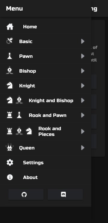 Aplikasi ini mengatur posisi dasar (ratu, benteng, dua benteng), pion, uskup, ksatria, benteng dan ratu. Untuk setiap jenisnya menyediakan banyak posisi untuk berlatih.
