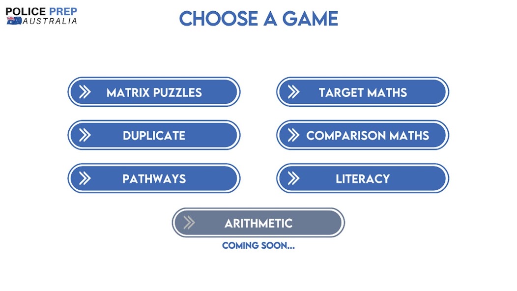 Aplikasi Pelatihan Australia Persiapan Polisi adalah cara yang menyenangkan dan interaktif untuk meningkatkan keterampilan otak Anda dan belajar tentang bagaimana pikiran Anda bekerja. Mainkan dan tingkatkan keterampilan perhitungan cepat Anda! Ini adalah bagian dari kursus persiapan ujian berbayar kami yang tersedia di policeprep.com.au.