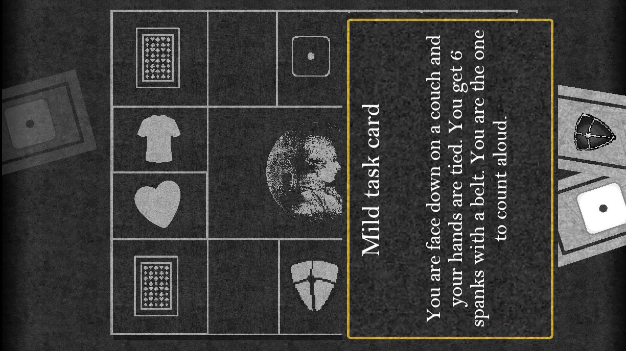 Pilih karakter Anda (salah satu dari empat teman dari "120 Days Of Sodom") dan mainkan melalui papan tugas dan berani ekstrem yang dibuat untuk pasangan. Game ini akan "menghabiskan biaya beberapa orang", seperti yang akan dikatakan De Sade.