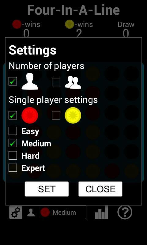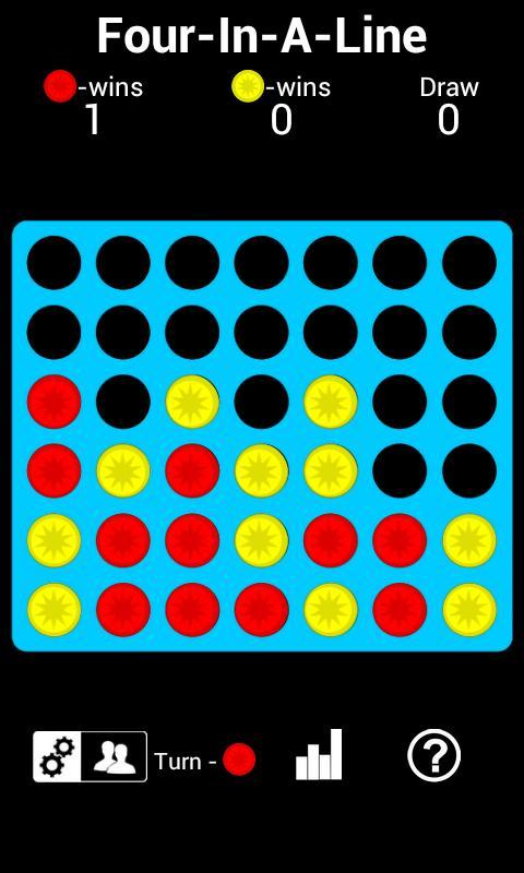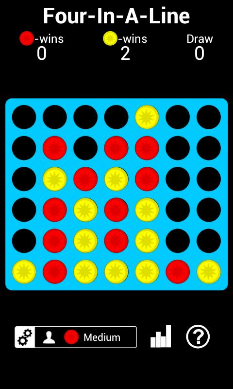 Four In A Line HD adalah versi modern dari game klasik. Empat dalam satu baris adalah permainan sederhana, gratis, menyenangkan dan membuat ketagihan untuk 1 atau 2 pemain. Anda dapat bermain sebagai pemain tunggal melawan Android atau bermain dengan teman atau kerabat Anda. Satu pemain bermain merah dan cakram kuning lainnya dan kemudian bergiliran menjatuhkan cakram berwarna dari atas ke dalam grid tujuh kolom, enam-baris yang ditangguhkan secara vertikal. Potongan jatuh lurus ke bawah, menempati ruang berikutnya yang tersedia di dalam kolom. Objek permainan ini adalah untuk menghubungkan empat cakram sendiri dengan warna yang sama di sebelah satu sama lain secara vertikal, horizontal, atau diagonal sebelum lawan Anda.
