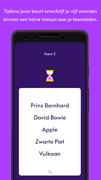 Half a Minute adalah permainan yang menyenangkan yang dapat Anda mainkan dengan jumlah pemain yang tak terbatas (setidaknya 4). Setiap anggota dari setiap tim menggambarkan 5 (kata) dengan Half a Minute . Tim yang memiliki pengetahuan dan taktik terbaik memenangkan permainan. Dijamin untuk malam yang menyenangkan dan lucu!