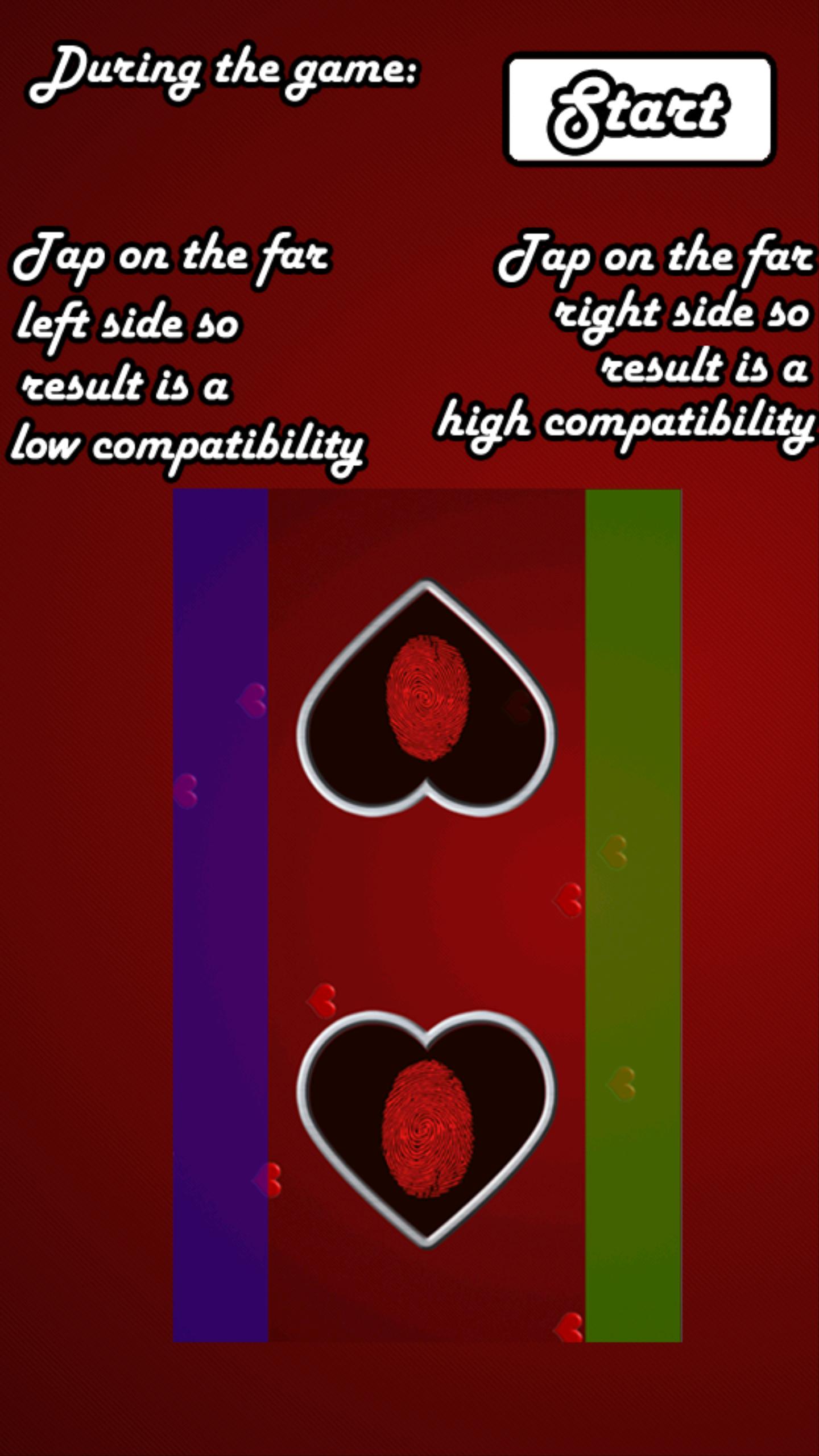 Pindai sidik jari Anda dan meteran cinta akan menunjukkan kepada Anda betapa kompatibelnya Anda. Sederhana saja, letakkan ujung jari Anda di pemindai, simpan di sana selama sekitar 6 detik, dan Anda akan menerima hasil kompatibilitas cinta Anda dan melihat apakah Anda cocok cinta!
