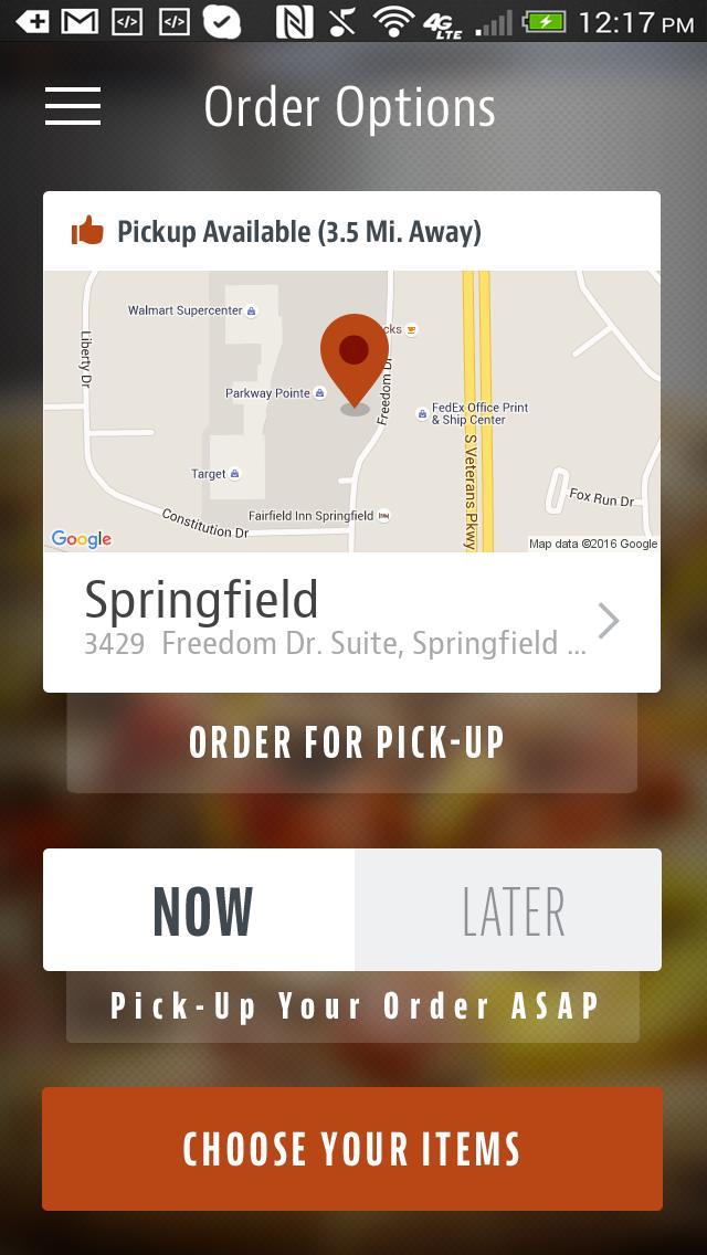 Dengan aplikasi The Pie's The Limit , memesan makanan favorit Anda untuk tidak pernah semudah ini. Cukup buka aplikasi, telusuri menu, pilih item Anda, dan voila! Fitur khusus meliputi: info restoran, akses menu lengkap, pesanan di depan, instruksi khusus, tip, dan menyimpan info akun Anda serta android pay untuk checkout mudah. Unduh. Memesan. Makan. Mengulang.